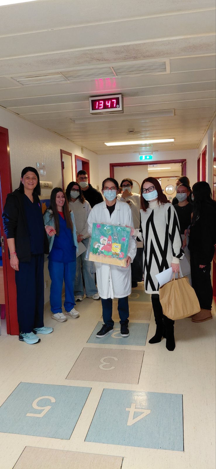 Οι μαθητές μας χάρισαν χαμόγελα και στιγμές χαράς στα παιδιά που νοσηλεύονται, τραγουδώντας παιδικά τραγούδια και προσφέροντας καμβάδες που φιλοτέχνησαν με αγάπη, καθώς και μικρά δωράκια. Παράλληλα, δώρισαν έναν πίνακα με αγαπημένους παιδικούς ήρωες, συμβάλλοντας στη δημιουργία ενός πιο ζεστού και φιλικού περιβάλλοντος στο παιδιατρικό τμήμα.