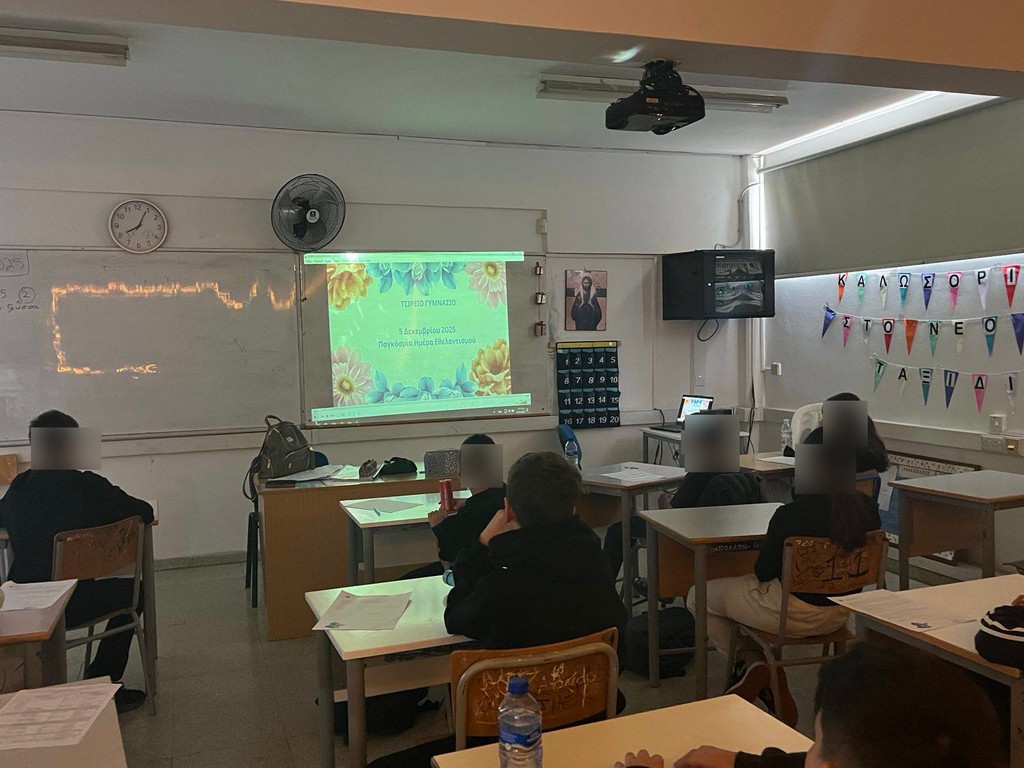 5/12/2025 | Ενδοτμηματική Παρουσίαση με βιντεάκια για τη σημασία του Εθελοντισμού και τους τομείς στους οποίους μπορεί να εφαρμοστεί | Χώρος: Τσίρειο Γυμνάσιο Λεμεσού | Διοργανωτής: Επιτροπή Εθελοντισμού Τσιρείου Γυμνασίου