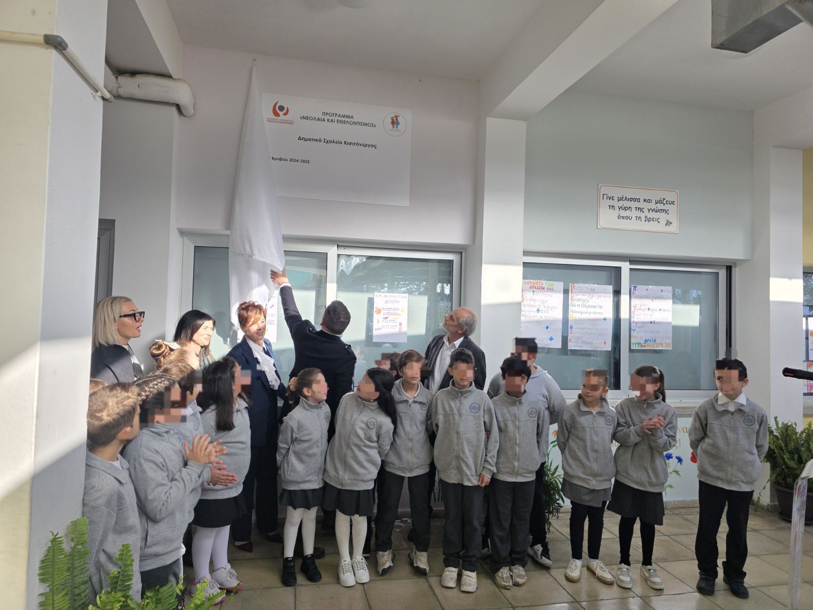 Με επιτυχία ολοκληρώθηκε η τελετή αποκαλυπτηρίων της πινακίδας στο Δημοτικό Σχολείο Κισσόνεργας, για την διάκρισή του σχολείου στον Διαγωνισμό του Προγράμματος Νεολαία και Εθελοντισμός 2024-2025 (3ο βραβείο), στις 4/3/2026, με την παρουσία του Προέδρου του ΠΣΣΕ κ. Ηλία Δημητρίου.